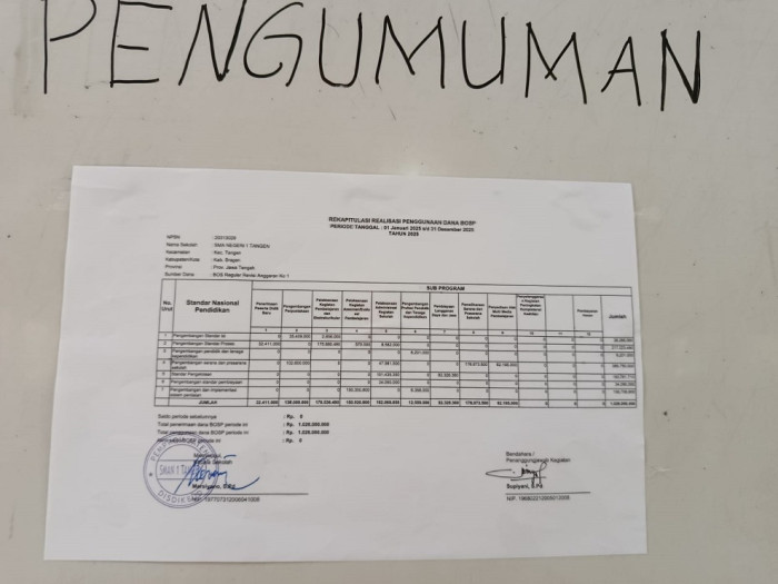 REKAPITULASI REALISASI PENGGUNAAN DANA BOSP TAHUN 2025